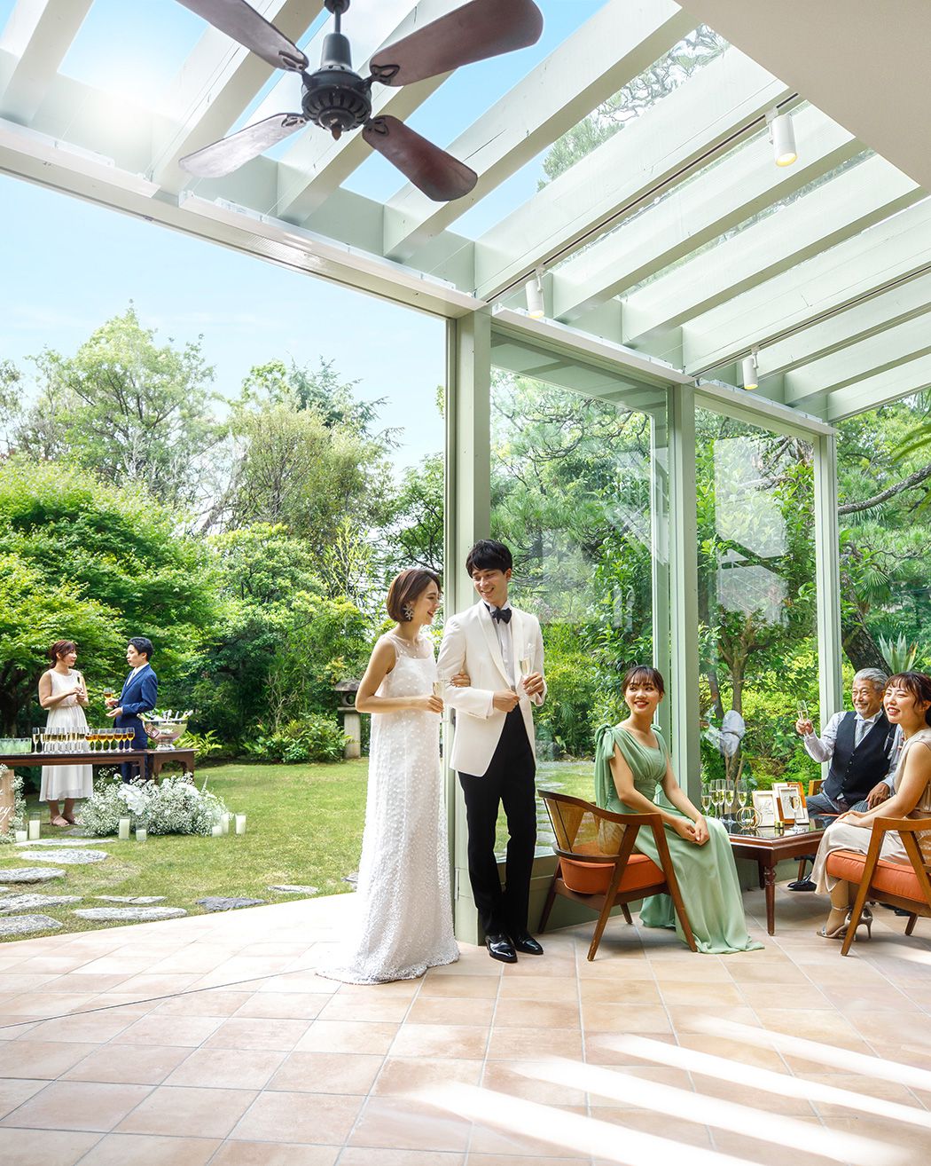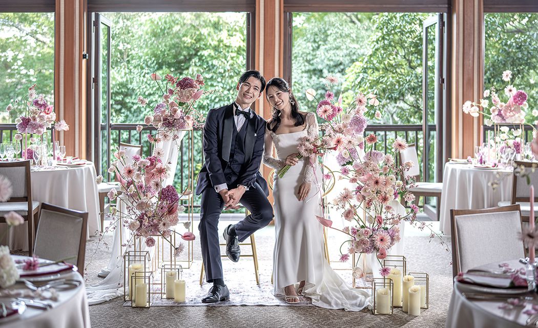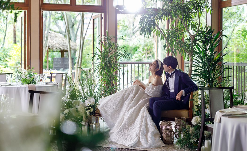 モダンコロニアルテイストの「ガーデンルーム」は、鮮やかな緑の庭園と調和するようにデザインされています。プライベートガーデンでの挙式をはじめ、エキゾチックなサンルーム風のバーやセカンドルームまで、おふたりの想いのままに空間演出してください。バンケットとガーデンを自由自在に行き来できる開放感も魅力のひとつです。