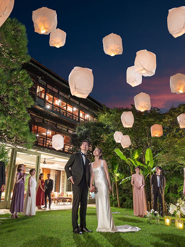 かの時代の日本ならではの美しさをそのままに、オリエンタルテイストを融合させた「オリエンタルルーム」。広々としたセカンドルームやブライベートガーデンまで