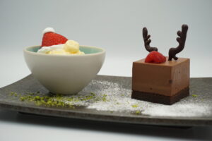 デザートはパティシエ特製のサンタやトナカイのモチーフのデザートも・・・♪🎅